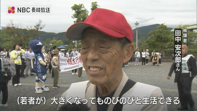 被爆者・田中 安次郎 さん「きょう参加している若いお友達、お友達が大きくなっても、のびのびと生活できる、そんな環境をいつまでも残していきたい」