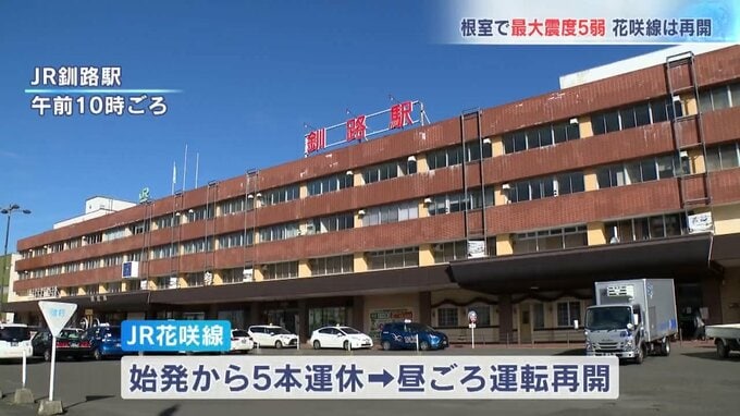 JR花咲線は、始発から5本が運休しましたが、昼ごろに運転を再開しました。