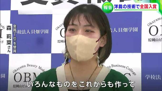 若い技能者の技術を競う「技能五輪全国大会」の洋裁部門で、岡山市の専門学校で学ぶ2人が「金賞」と「敢闘賞」を受賞しました。「洋裁職種、金賞、森莉菜殿。おめでとうございます」金賞の森莉菜さんと、敢闘賞の…