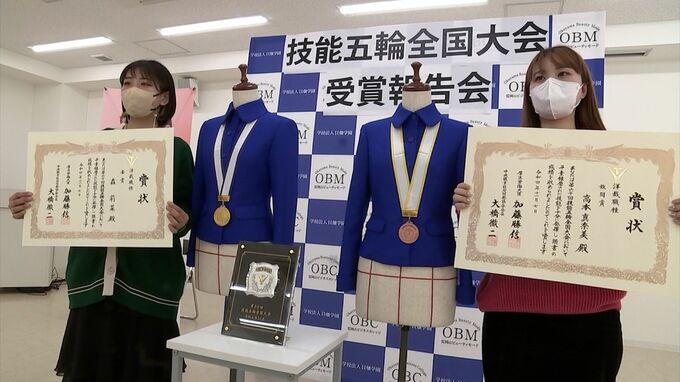 若い技能者の技術を競う「技能五輪全国大会」の洋裁部門で、岡山市の専門学校で学ぶ2人が「金賞」と「敢闘賞」を受賞しました。