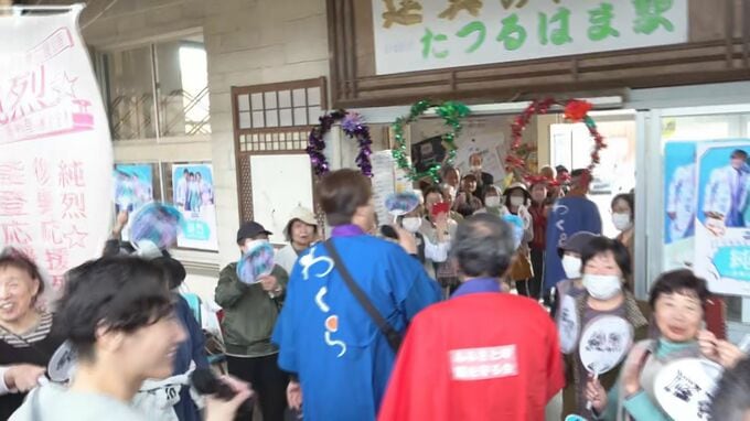 この取り組みは和倉温泉観光協会と旅館協同組合が開催したもので、抽選で選ばれた能登地区在住の30人がスーパー銭湯アイドル「純烈」のメンバーとふれあいながら、和倉温泉駅から穴水駅までの列車の旅を楽しみます。
