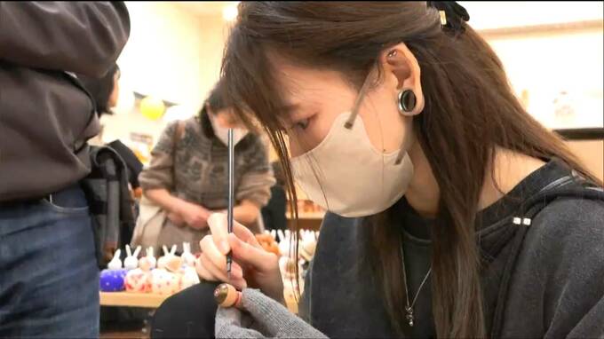 25日はこけし工人による絵付けなども披露され、多くの人が工人の技に見入っていました。