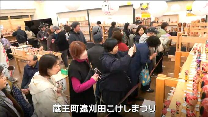 東北のこけし工人の作品を展示・販売する催しが25日に宮城県蔵王町で開かれ、大勢の愛好家でにぎわいました。