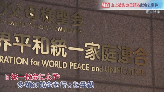 「献金で家庭がめちゃくちゃに」山上被告の母語る献金と事件