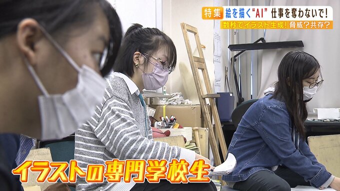 日々進化を遂げるAI。キーワードを入力するとAIが自動で一瞬でイラストを描いてくれるというアプリも登場していて、これまで人間にしかできないと思われてきたクリエイティブ分野にまでAIが進出しつつあります。果たしてAIは人間の仕事を奪うのか。イラストレーターを目指す専門学校生に話を聞きました。