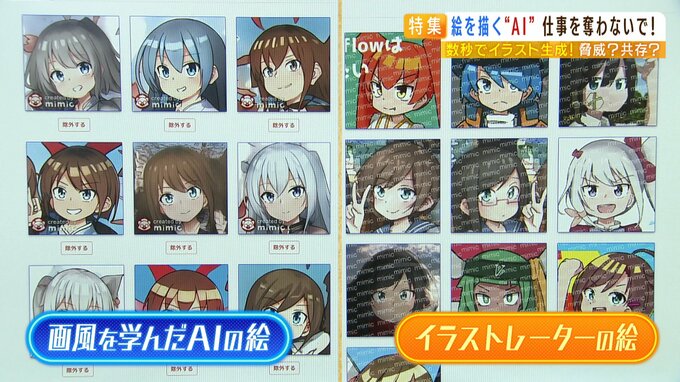 AIが描くイラストが物議を醸したケースもあります。今年8月にサービスを開始した「mimic」。AIに特定のイラストレーターの画風や絵柄を学ばせると、まるでその人が描いたかのような新たなイラストを生み出すことができるのです。