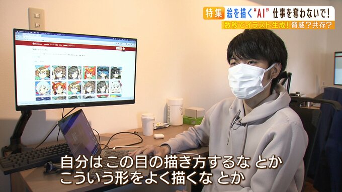 「(QAIが自分の絵の特徴を捉えているなというのは?)ありますね。自分はこの目の描き方をするなみたいな。こういう形をよく描くなとか。目がけっこう縦長だとか、顔の形もだいたいこういう形でよく描くなとか、自分がよく描く構図や癖がすごく出ているなと感じます」