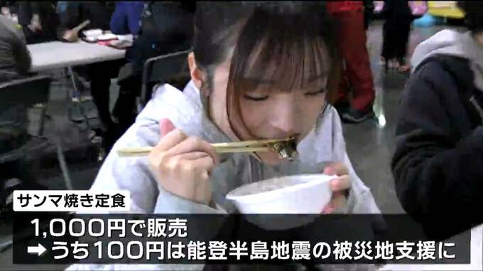 サンマ焼き定食は1000円でそのうち100円は能登半島地震の被災地支援に充てられます。