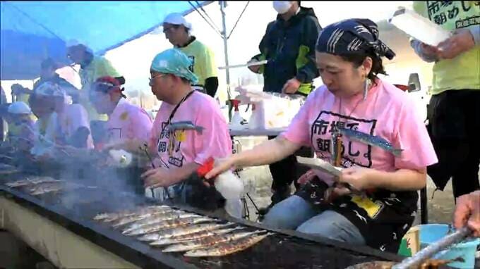 会場の気仙沼市魚市場では地元に水揚げされたサンマが炭火焼きで提供され大勢の家族連れなどが旬の味覚を楽しんでいました。