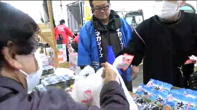 また、地元の水産加工品などを販売する65のブースも並び、訪れた人たちは市価より2割から5割ほど安く販売されている商品を次々と買い求めていました。