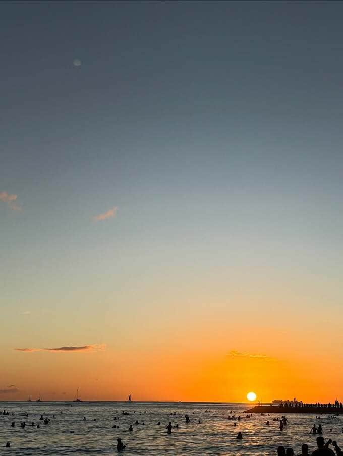 気象予報士の穂川果音さんが自身のインスタグラムを更新。ハワイ・ワイキキビーチでのサンセット写真を複数枚公開しました。