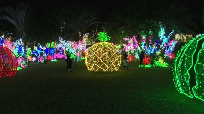 「インターナショナル・イルミネーションアワード」で2年連続で全国2位を受賞している沖縄市の東南植物楽園で、恒例のイルミネーション点灯式が行われました。
