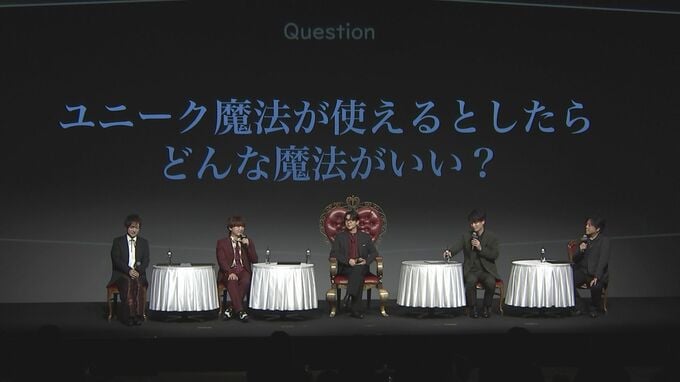 会場が「?」という雰囲気に包まれるなか、花江さんはさらに、“そのためには、寝る準備を早くしないといけないんですけど、やっぱりめんどくさいのがお風呂。なので、僕のユニーク魔法は…お風呂に入ったことになるというユニーク魔法です”と続け、掲げた魔法は、“9時には寝よ、オフロイカズユアベッド!!!”と声高らかに呪文を唱え、会場は大爆笑。