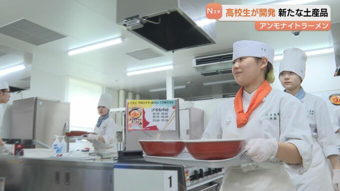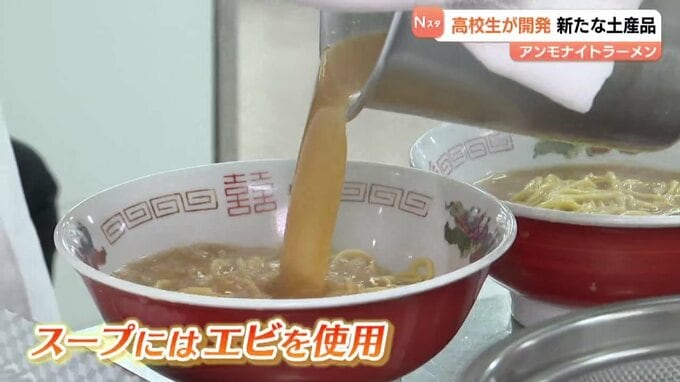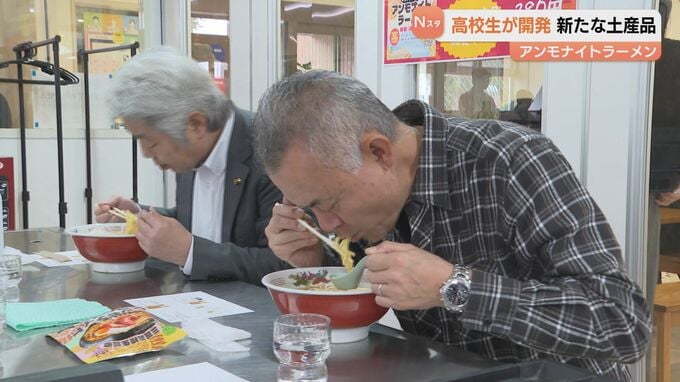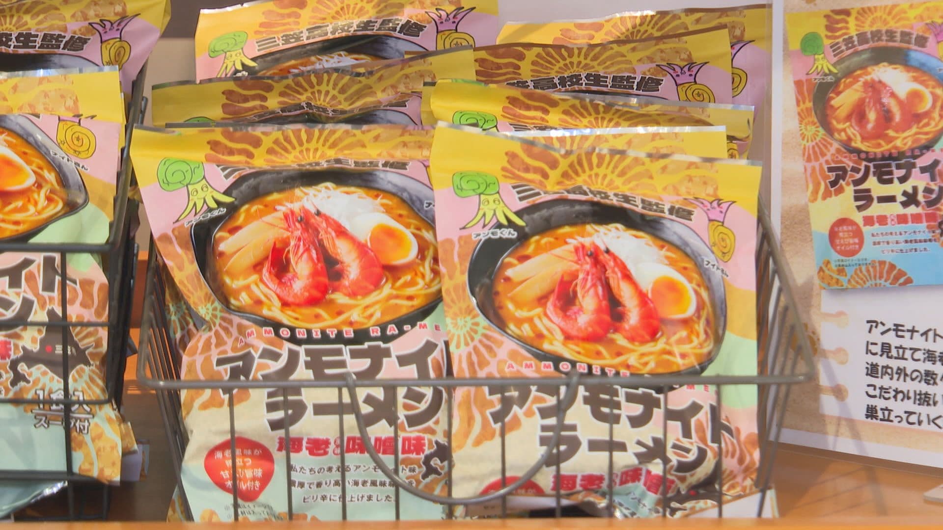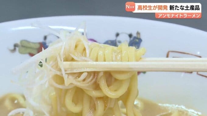 三笠高校の生徒がマチの魅力を広めようと開発したその名も「アンモナイトラーメン」です。