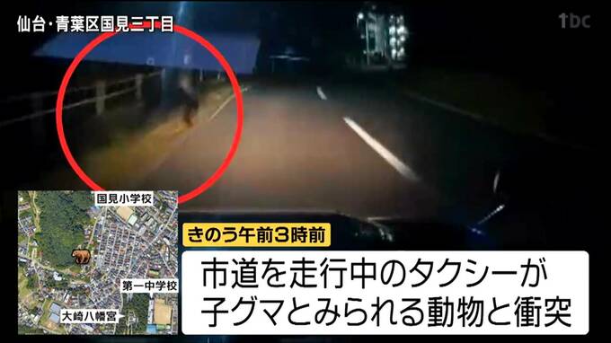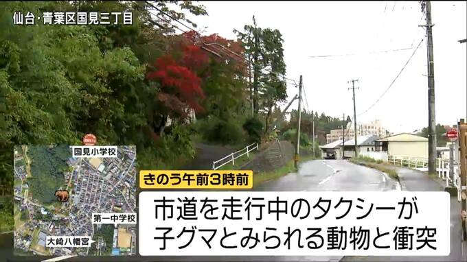 25日に仙台市内の市道で走行中のタクシーが、クマと衝突しました。