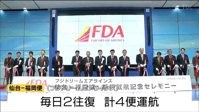 静岡県に本社を置く航空会社「フジドリームエアラインズ」が26日、仙台空港と福岡空港を結ぶ定期便を就航しました。