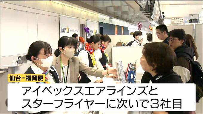 仙台ー福岡便の就航はアイベックスエアラインズとスターフライヤーに次いで3社目です。