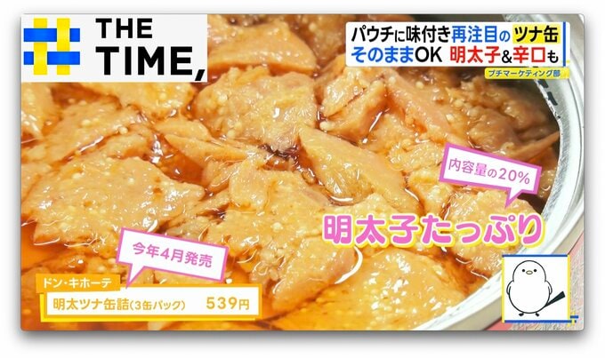 『ドン・キホーテ』で4月から登場したのは、トマトや玉ねぎ、唐辛子で味付けをした「辛口ツナ缶詰」(70g×3缶・431円)と、明太子をふんだんにあわせた「明太ツナ缶詰」(70g×3缶・539円)。
