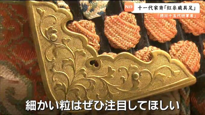 「将軍家の甲冑は、どれも金具回りが大変豪華。金工が大変緻密につくられていて、特に魚々子(ななこ)と呼ばれる細かい粒のあたりはぜひ注目してほしい」
