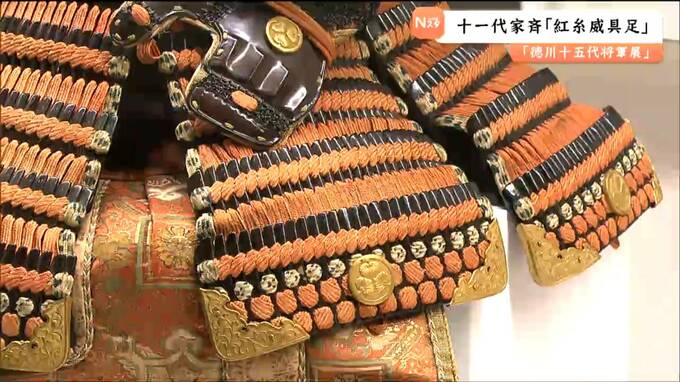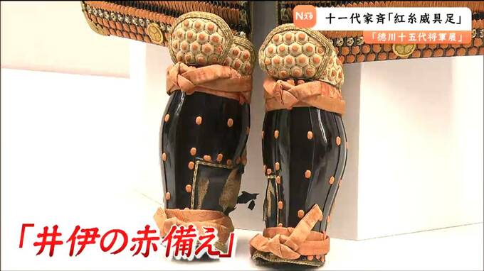 十一代・家斉の甲冑「紅糸威具足(くれないいとおどしぐそく)」は、徳川家が特に信頼を置いた井伊家からの献上品です。