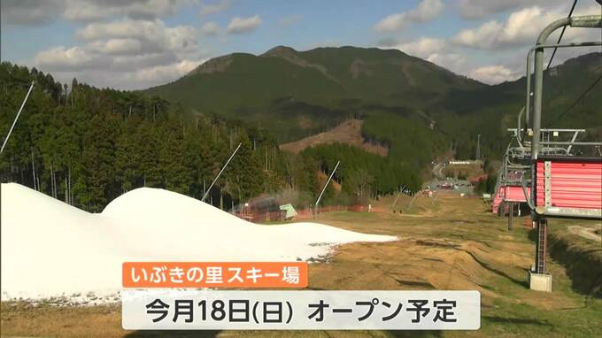 「人工雪」によるコース作りが進む、新見市のいぶきの里スキー場です。