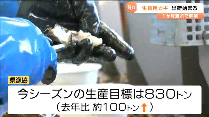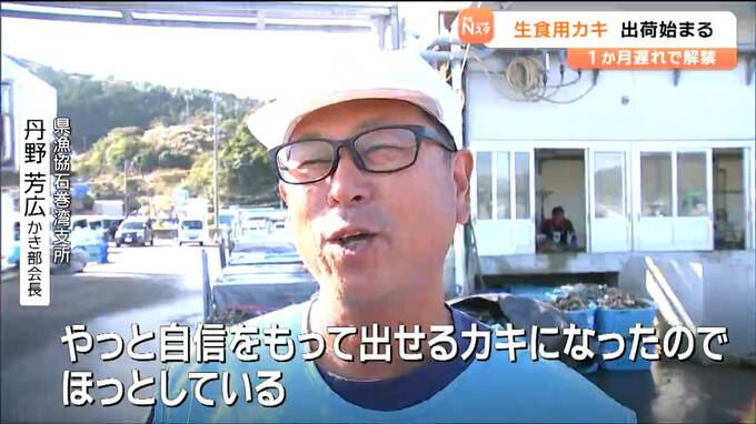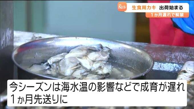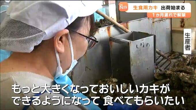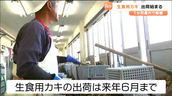 海水温の上昇などによる成育の遅れで、1カ月先送りしていた宮城県内産の生食用カキの出荷が、27日から一斉に始まりました。