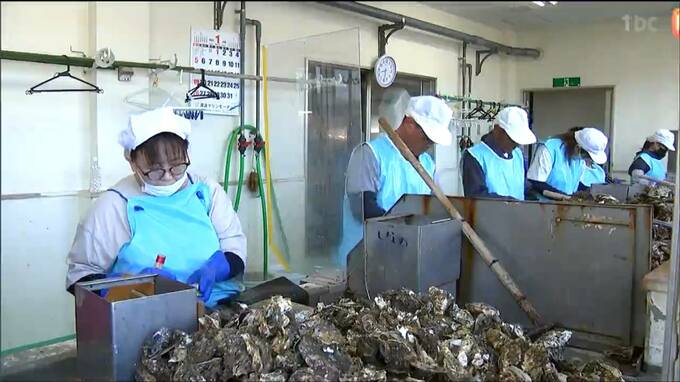 このうち、宮城県石巻市渡波の処理場では、生産者約150人が、前日に水揚げをした養殖カキの殻を手際良くむいていました。