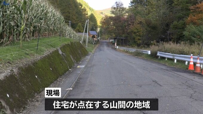 現場は住宅が点在する山間の地域で、警察が付近の住民に注意を呼びかけています。