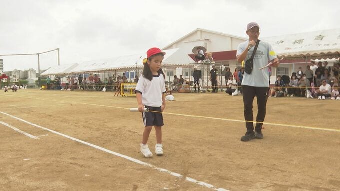 ほかにも、一直線に引っ張られたロープに通したバトンを持ってまっすぐ走るロープ走も行われました。