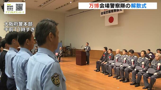 大阪・関西万博の会場で事件や警備などの対応にあたった、大阪府警の会場警察隊の解散式が行われました。 (大阪府警本部 岩下剛本部長)「大阪府市、博覧会協会、大阪メトロなどとともにこの世界的行事をやり遂…