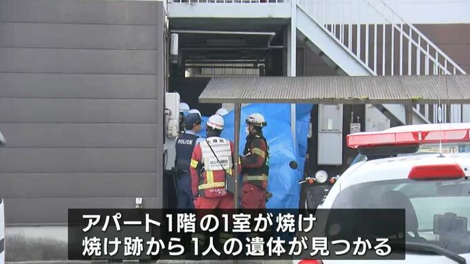 消防車8台が出て消火にあたり、火は約20分後に消し止められましたが、2階建てのアパートの1階の1室が半焼し、焼け跡から1人の遺体が見つかりました。