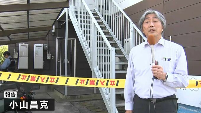 「こちらのアパートの一室で1人の遺体が見つかったということです。」