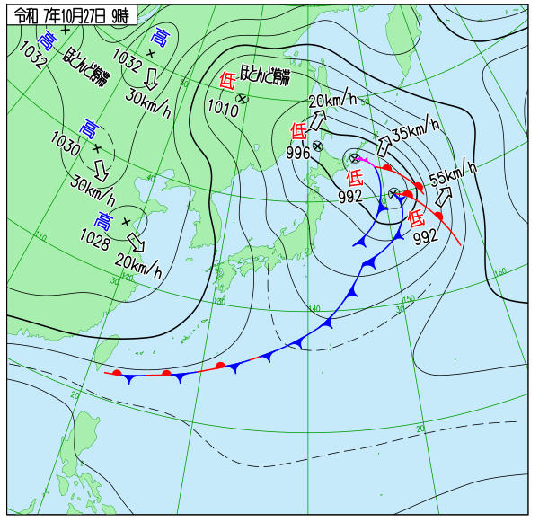 【大雨情報】31日は西日本で 31日~週末11月1日頃にかけては東日本と北日本で「大雨」や「荒れた天気」の見込み 気圧の谷になる日本付近に発達する低気圧が… 今後の天気は?【雨風シミュレーション】 青森テレビ 2025年10月27日(月) 14:35 国内 【天気図(最新・24時間・48時間予想図あり)】 気象庁HPより(10月27日午後2時現在) 気象庁HPより 気象庁HPより 気象庁HPより