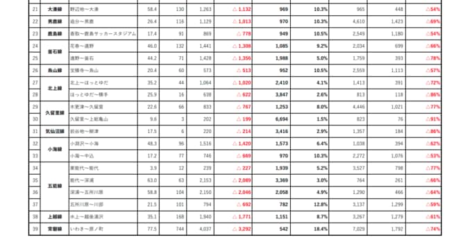 【一覧あり】27億円超の赤字の区画も… JR東日本が「ご利用の少ない線区の経営情報(2024年度分)」を発表 100円稼ぐための『営業係数』が1万円超の区画も… あなたの街のあの路線・区画も…? 4時間前
