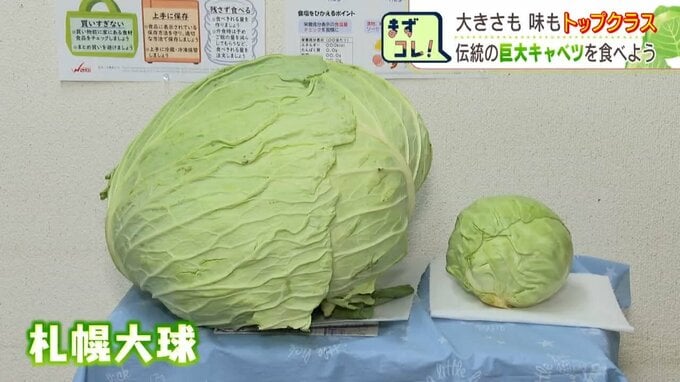 「大きい!普通のキャベツと比べ『札幌大球』を持ってみると…結構重いです」