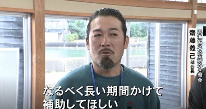 県漁協穴水支所かき部会・齋藤義己部会長「養殖業1次産業自体が短時間で復興するということは難しいと思っているので、なるべく長い期間かけて補助してほしい」