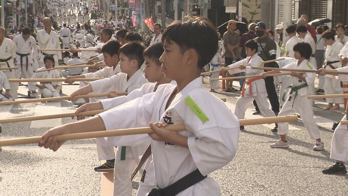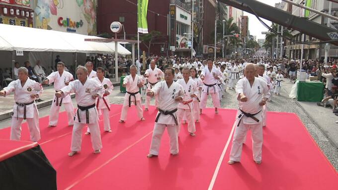 2005年に空手の発展と世界の平和に貢献するという願いを込め県議会で決議された10月25日の「空手の日」。制定20年を記念してフェスティバルと演武祭が那覇市の国際通りで開催されました。