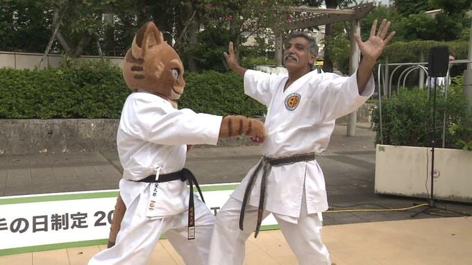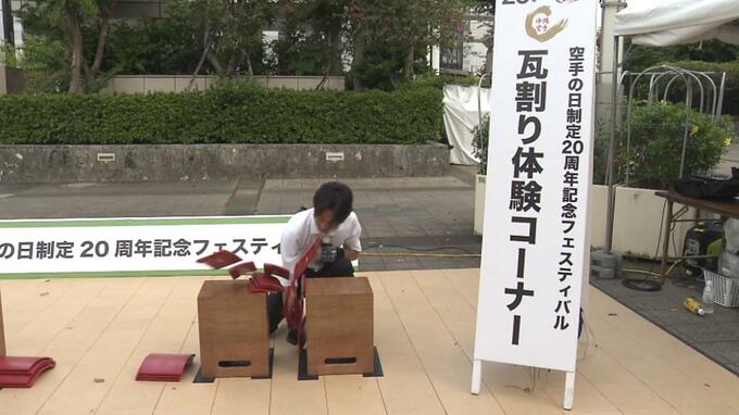 記念フェスティバルでは、琉球空手アンバサダーの「琉空太郎(りくたろう)」との記念撮影ブースや瓦割り体験のブースなどが設置され、多くの空手愛好家で賑わいました。