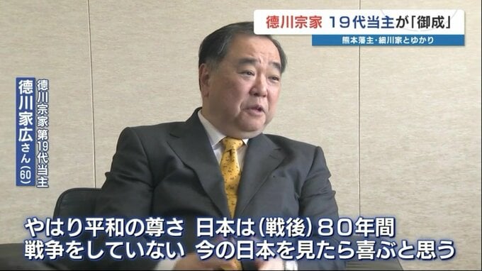 德川宗家 第19代当主 德川家広さん(60)「やはり平和の尊さ。日本は戦後80年、ということは80年間戦争をしていない。今の日本を見たら喜ぶと思う」
