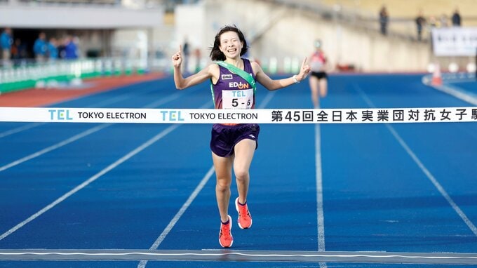 アンカーの6区(6.795km)、先頭でスタジアムに入ったエディオン・平岡美帆は、後ろから追い上げてくるJP日本郵政・ルーキーの小暮真緒を振り切り、優勝のフィニッシュテープを切った。エディオンは32回目の挑戦にして初めて、悲願の実業団駅伝女王の称号を手にした。JP日本郵政はわずか7秒差の2位と、連覇を逃した。