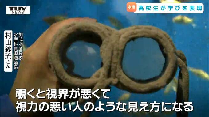 加茂水産高校 水産科資源増殖系 村山紗琉さん「ドジョウの視覚が悪いというのを伝えたくて、「ドジョウナマズスコープ」というものを開発した。覗くと視界が悪くて、視力の悪い人のような見え方になる」