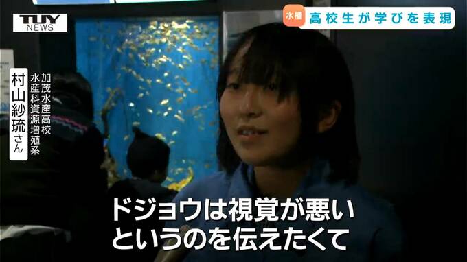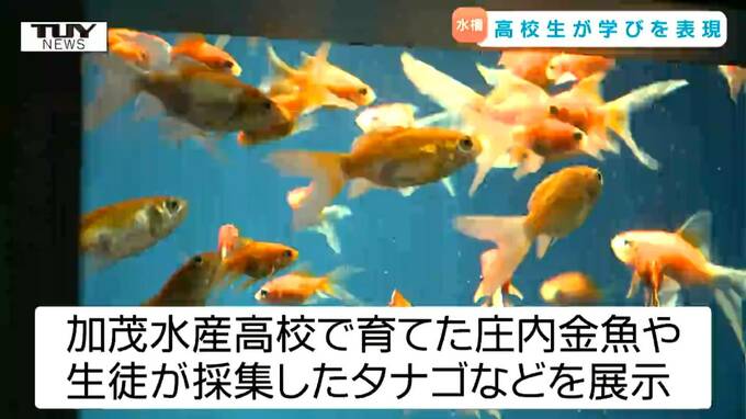 水槽には加茂水産高校で育てられた庄内金魚や今年6月に生徒が採集した「タナゴ」や「ドジョウ」などが展示されています。