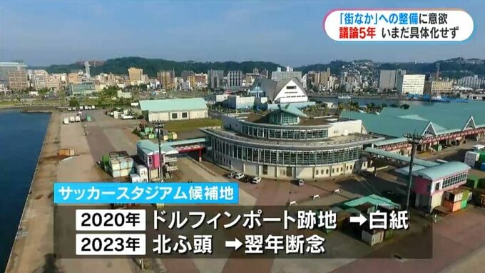 鹿児島市が目指すサッカースタジアム整備について、下鶴市長は27日、改めて「街なか」への整備に意欲を示しました。一方、整備の場所や時期は、5年の議論を経ても未だ示せない状況が続いています。