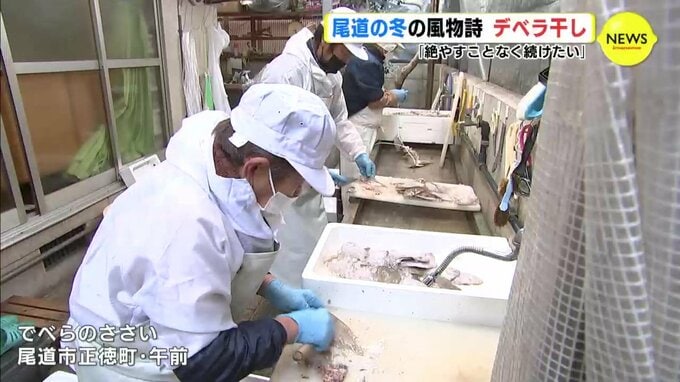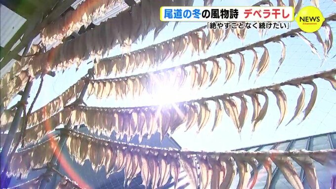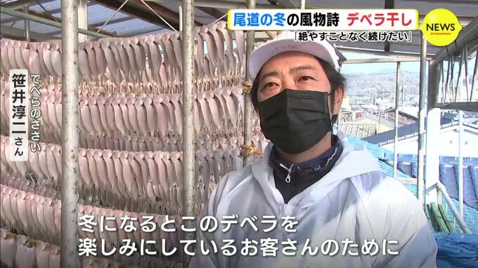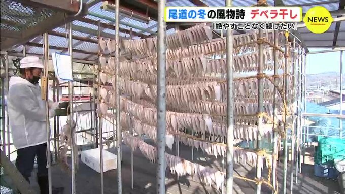 デベラ干しは、来年の2月中旬まで行われ、個人向けに発送されるほか、みやげ物店などに出荷されます。