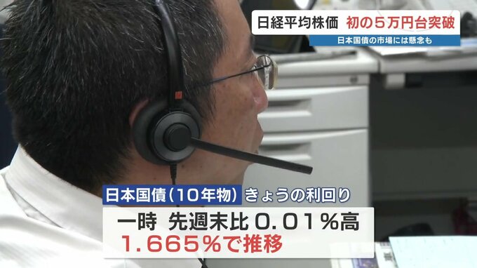 国債は、一般的に、買い手が減るなどの懸念がある場合、価格が下がって金利は上がる傾向にありますが、長期金利の代表的な指標である10年物の日本国債の利回りは一時、先週末と比べて0.01%高い1.665%で推移しました。