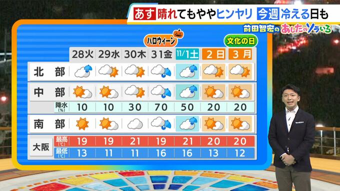 10月28日(火)の近畿地方は、晴れても空気はややヒンヤリ。日中でもジャケットやカーディガンが欲しいくらいでしょう。 27日(月)は西高東低の気圧配置になりました。北からはこの時期にしては強い寒気が…