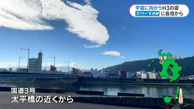 街なかで目撃した人もいました。薩摩川内市の国道3号にかかる太平橋の近くから、空にのびる白煙が見えます。