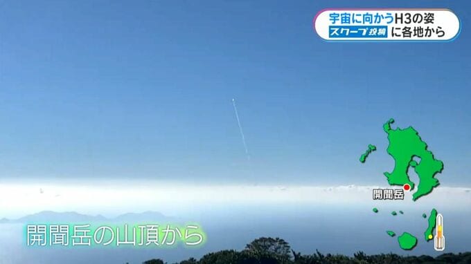 雲を突き抜けて高度を上げていくロケット。こちらは、標高924メートルの開聞岳の山頂から撮影されました。撮影した男性は、打ち上げにあわせ、およそ2時間かけて開聞岳を登ったそうです。