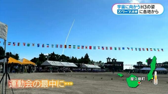 こちらは屋久島の小学校。運動会の開会式が終わったころ、空にロケットが。みんなで打ち上げを見守ったということです。