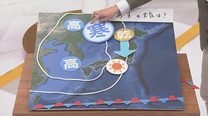 これで、朝は地上から熱が逃げる放射冷却の影響で冷え込みまして、昼間はこの寒気の影響もあって日中もきょうと比べて気温が下がる形になります。